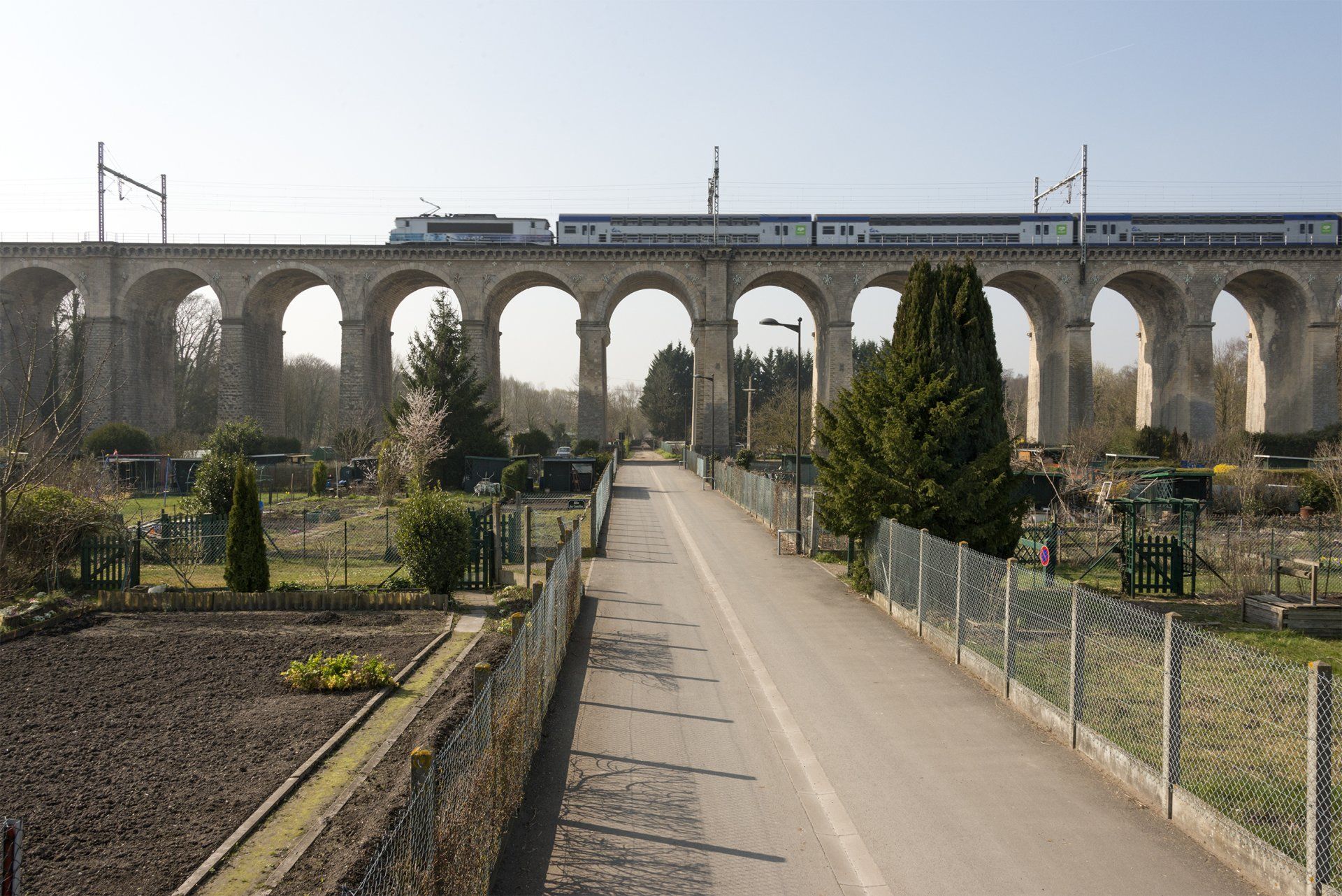 Baldus followed the railroad-track but freely photographed towns, monuments and landscapes of heritage along with the railway infrastructure (viaducts, stations) thus rendering a view of Picardy not visible to the travellers from the train.