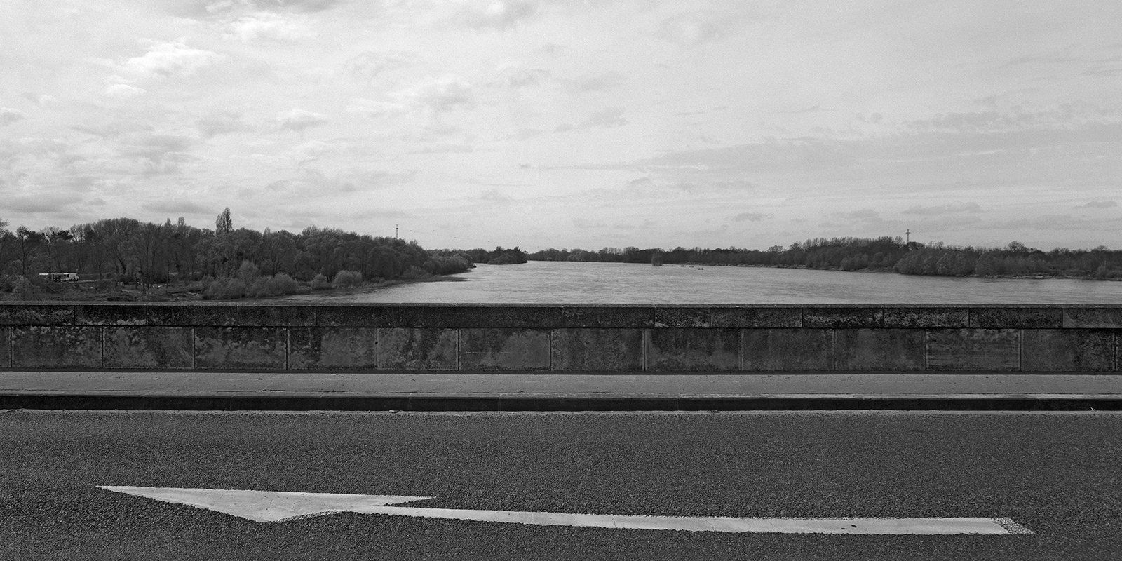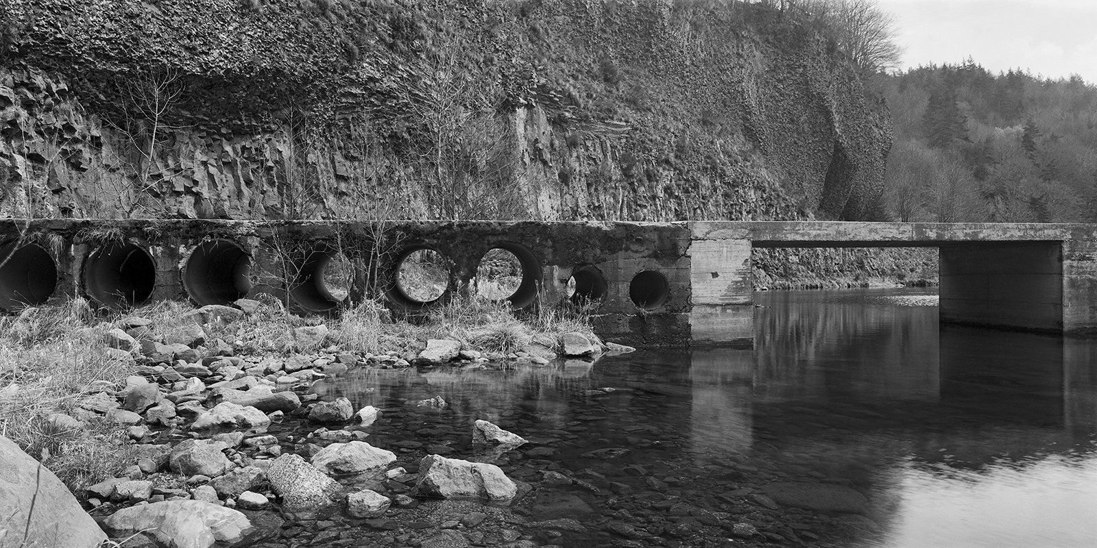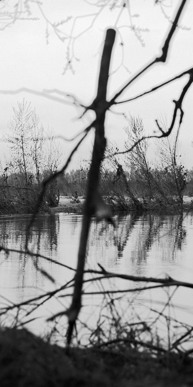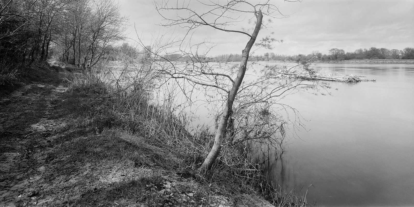 I photographed the river with a 6x12 cm back mounted on a large format Cambo-Wide camera. Except for the first and last image I contact-printed the resulting panorama's.