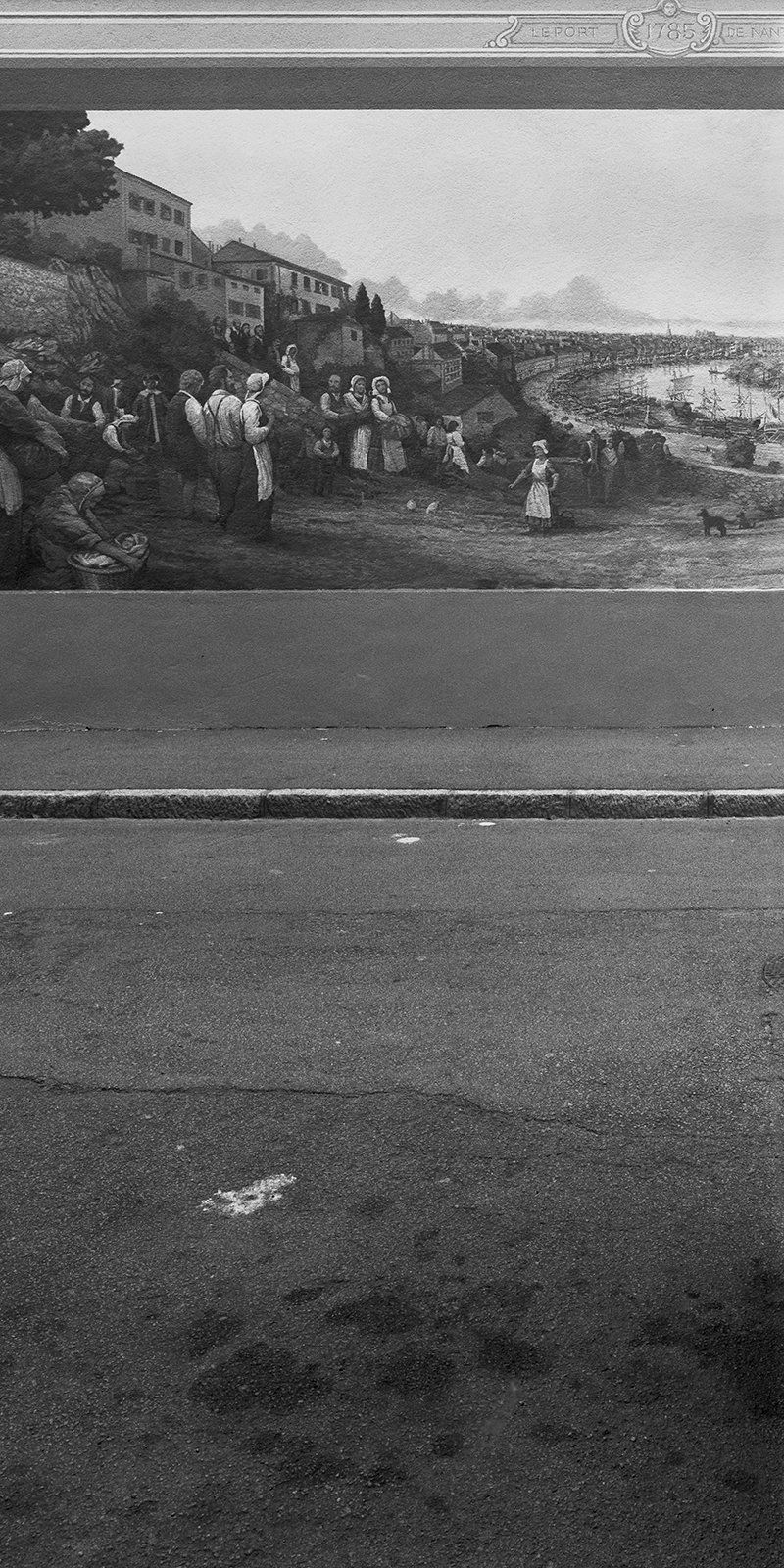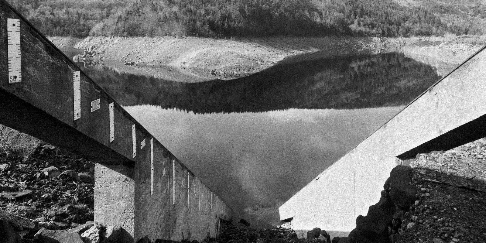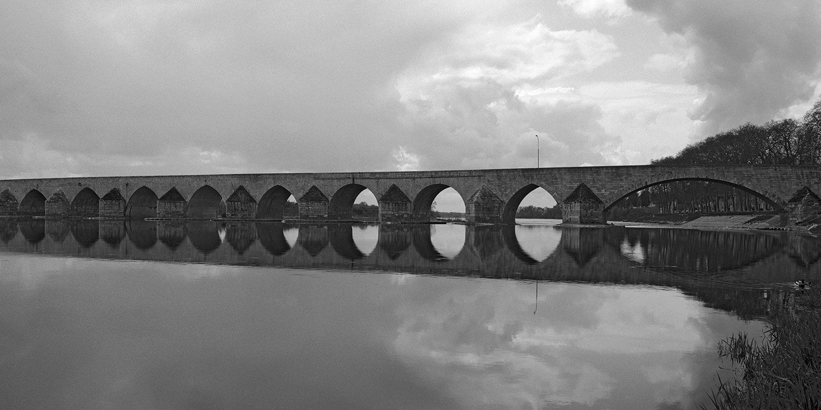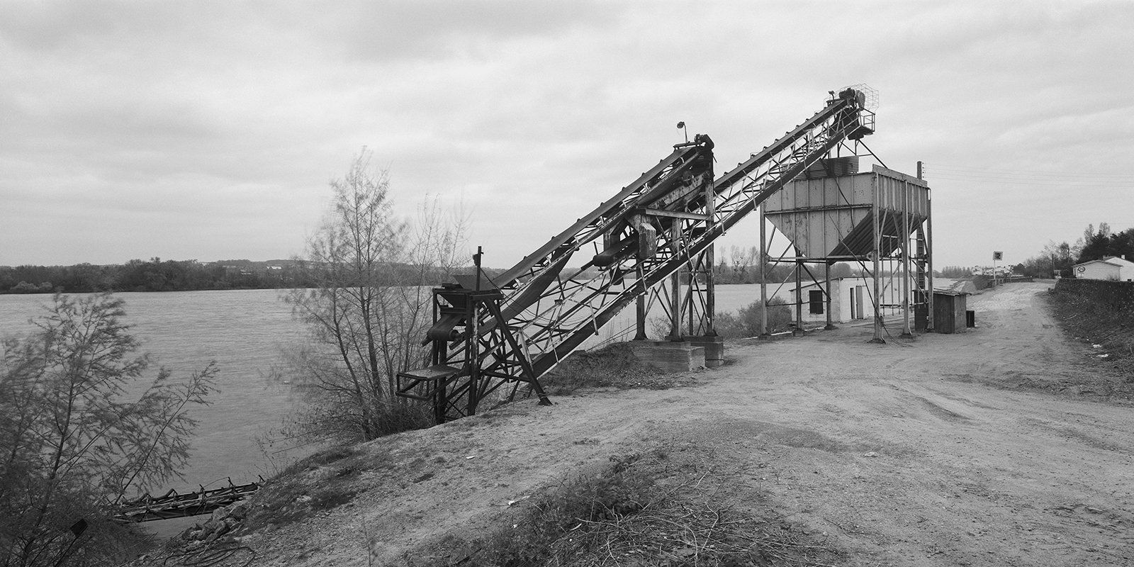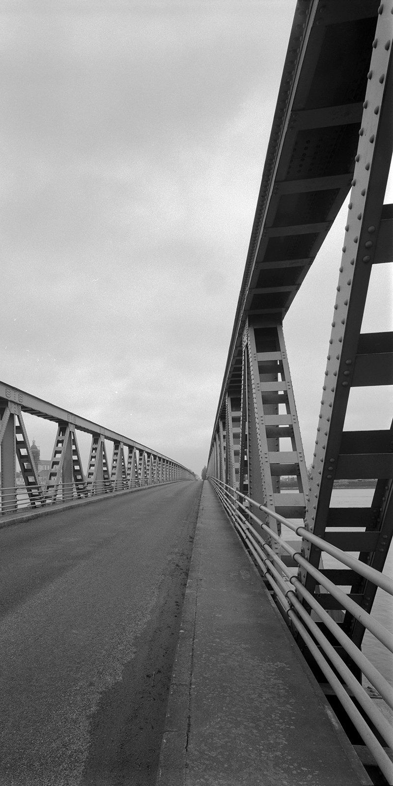 I photographed the river with a 6x12 cm back mounted on a large format Cambo-Wide camera. Except for the first and last image I contact-printed the resulting panorama's.